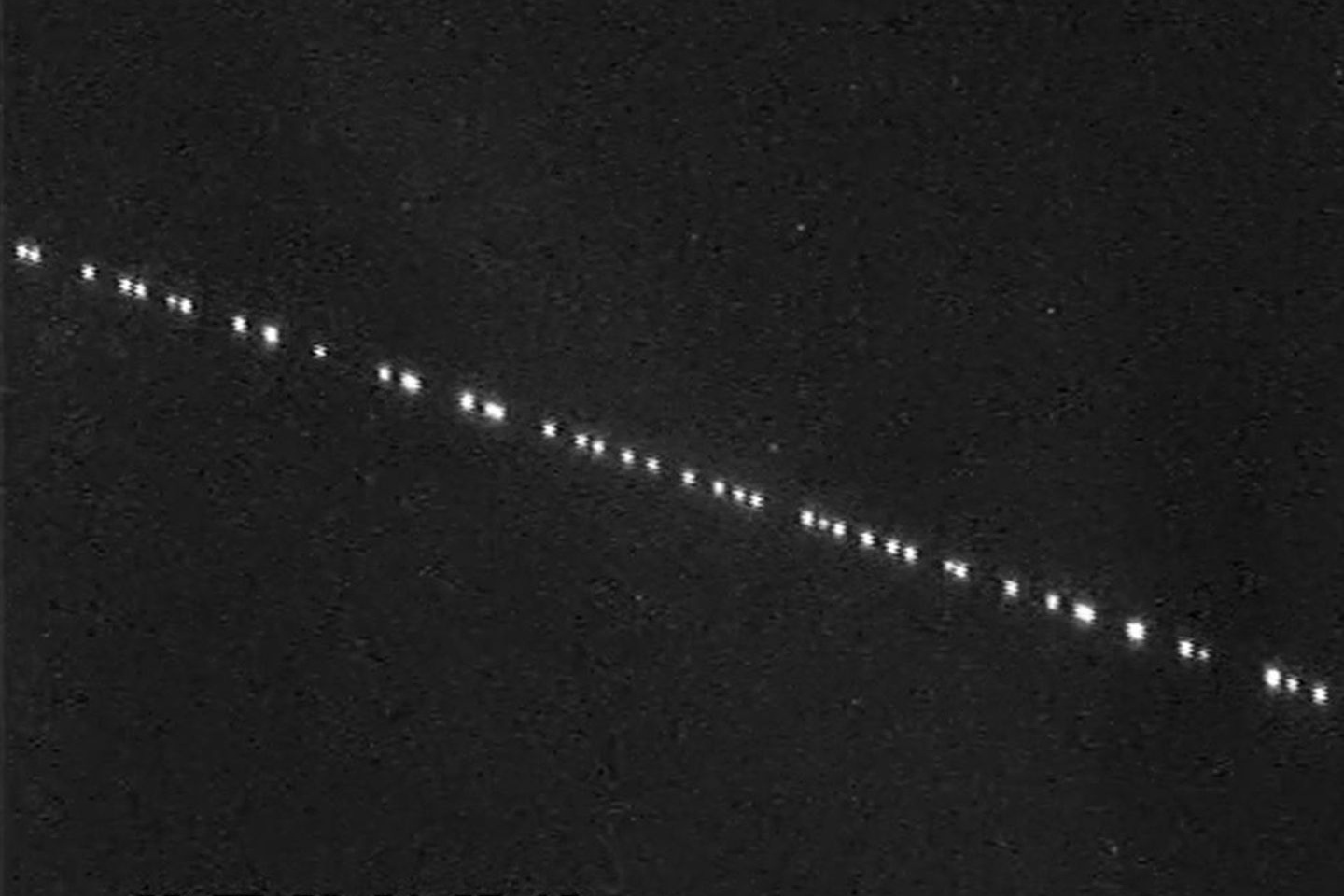 Jetzt aber faszinierte ihn diese schnurgerade Lichterkette, die wie mit dem Lineal gezogen im aufgehenden Sternenhimmel glitzerte. Eine hier und da unterbrochene Kette von überschlägig mindestens vierzig strahlenden Perlen in unglaublich exakter Aufreihung. Wie die Fenster in einem unendlich fernen Zug. Das müssen die ominösen Starlink-Satelliten von Elon Musk sein, dachte unser Dorfmeister und fühlte, wie ihn dieser überwältigende Anblick im gleichen Moment fesselte und erschreckte. Diese Dinger werden im Ukraine-Krieg von den Militärs zur Lageaufklärung genutzt. Und wenn der verrückte Musk sie mal abschalten will, stehen die Soldaten wie blind da, mitten im Feuer des Krieges.