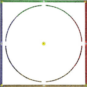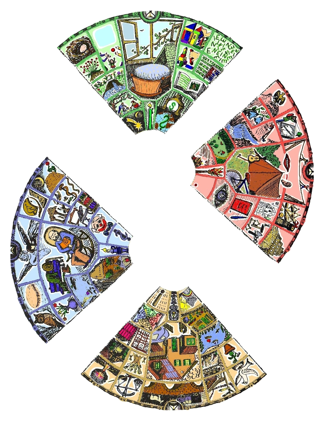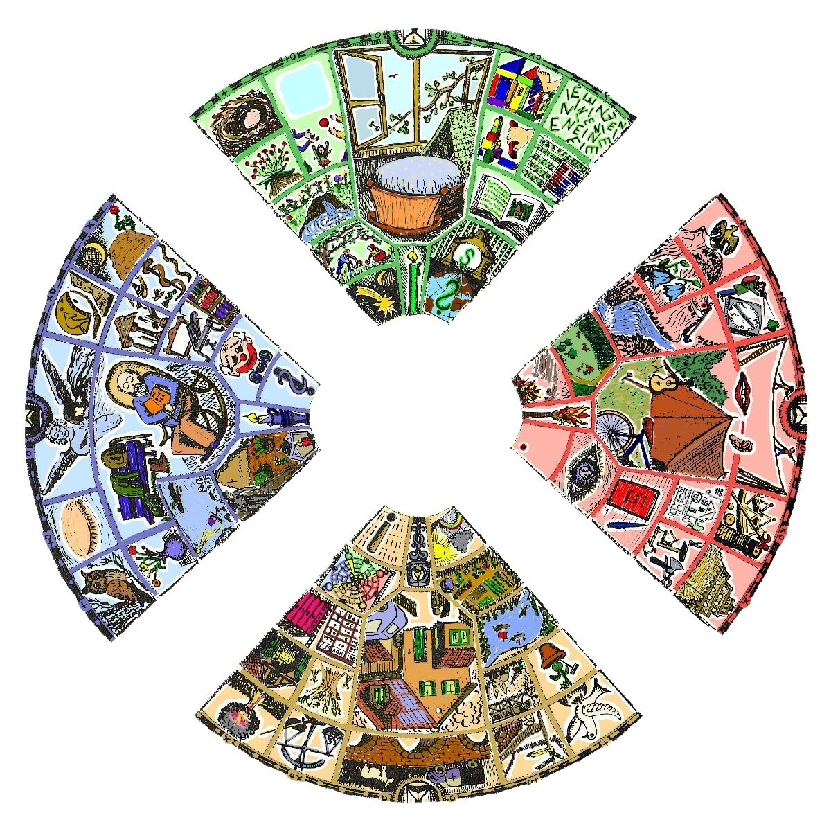 4 Eck-Regionen zwischen Quadrat und Kreis stellen die Natur in 4 Zeitphasen dar.