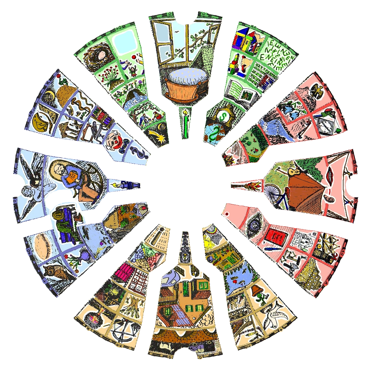 Der Kreismittelpunkt stellt das menschliche Bewusstsein dar, wie es im jeweiligen Jetzt eine bestimmte Frage in den Mittelpunkt der Betrachtung stellt.