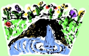 Ursprung des Bachlaufs; das frische Wasser des Lebens quillt hervor und kann den Durst von Pflanze, Tier